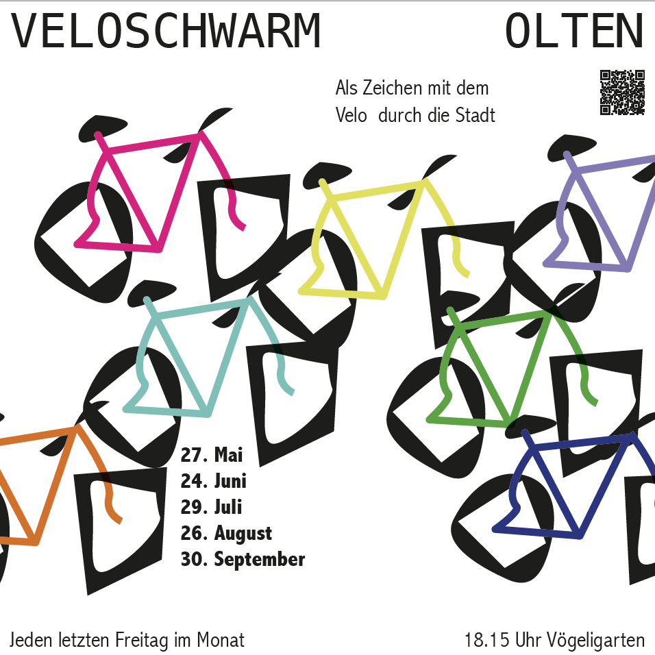 Ab 10 Personen ist es erlaubt, nebeneinander auf der Strasse zu fahren. Wir nutzen diese Freiheit und fahren als grosses Verkehrsmittel auf den Hauptstrassen durch Olten. Unser Fahrzeug («der Schwarm») beginnt bei der ersten Person und endet zuhinterst. Wir halten uns als ein Fahrzeug an die Verkehrsregeln.