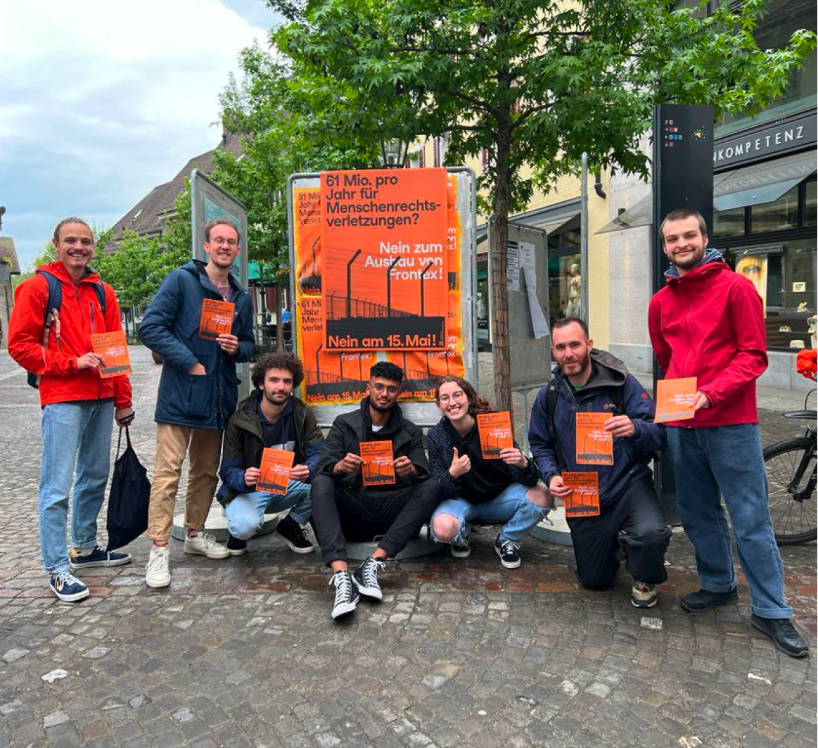 Mit dabei waren die SP-Kantonsrätin Farah Rumy und Tobi Vega vom Verein “Willkommen in Olten”. Wetterbedingt wurde das geplante offene Gespräch auf der Kirchgasse jedoch kurzfristig abgesagt und dafür eine grossflächige Flyeraktion gestartet. Dabei konnten in diversen Gesprächen viele Passant:innen von einem Nein zum Ausbau am 15. Mai überzeugt werden. Denn eines war trotz Regen und Kälte klar: Die Schweiz muss mehr Verantwortung in der internationalen Migrationspolitik übernehmen und echte, wirksame und legale Wege der Flucht anbieten. Der Ausbau einer Grenzschutzbehörde ohne jegliche humanitäre Unterstützung, die an unzähligen Menschenrechtsverletzungen beteiligt ist, ist der falsche Weg.
