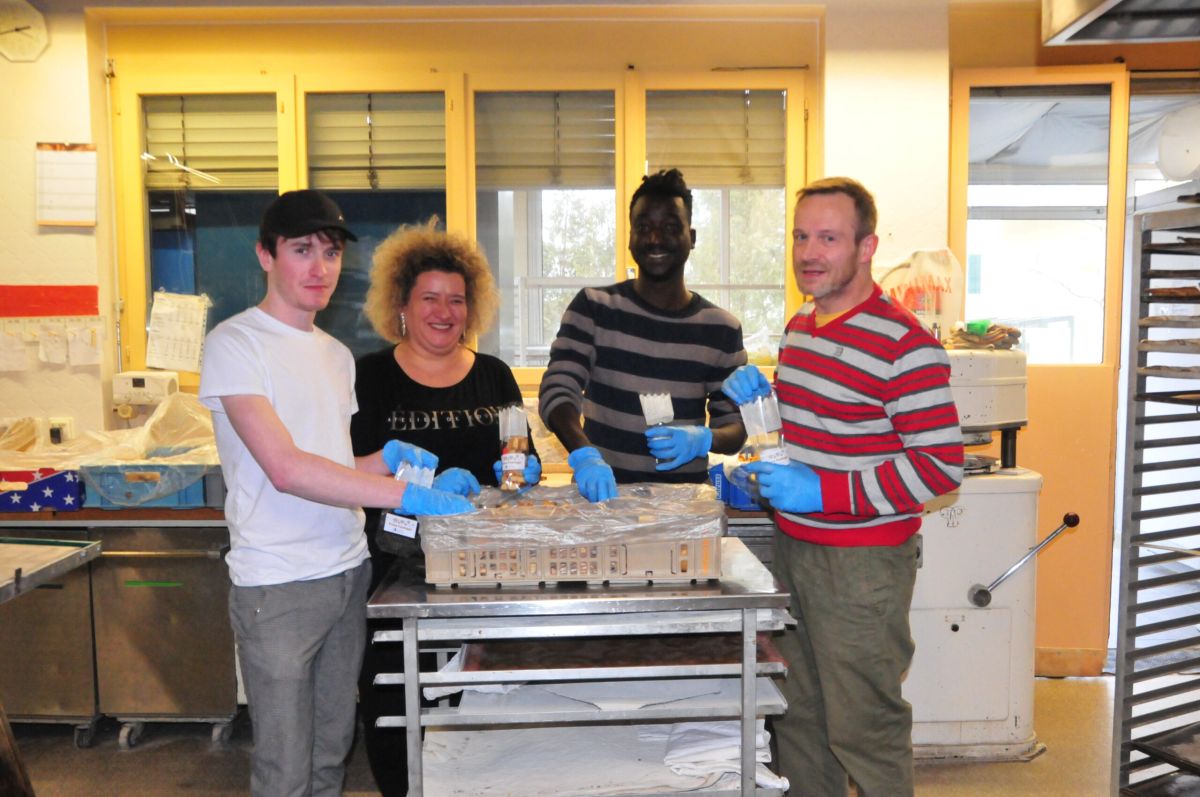 Mehr als 7’000 Mailänderli: Stefan Hunziker (rechts) und sein Team verpacken die süssen Köstlichkeiten. (Foto: zVg)
