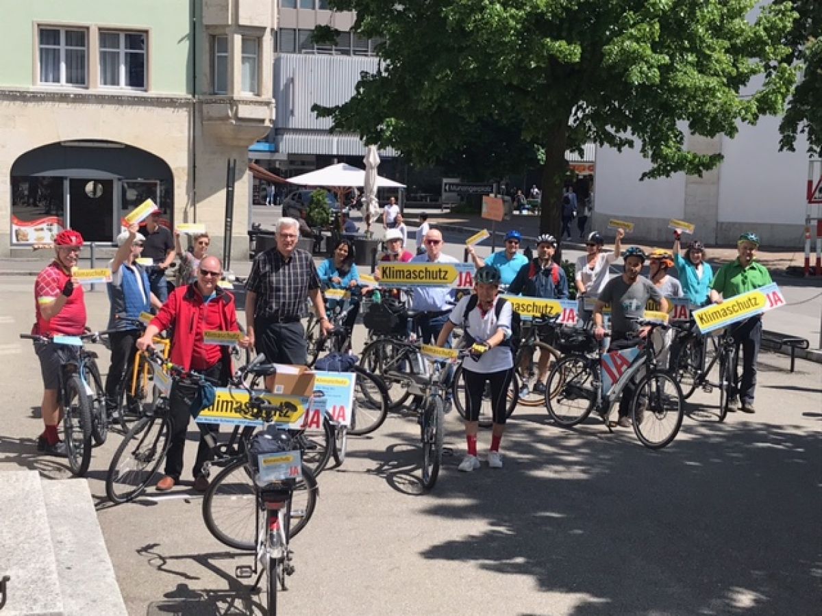 Mit einer Velotour unterwegs für das CO2-Gesetz