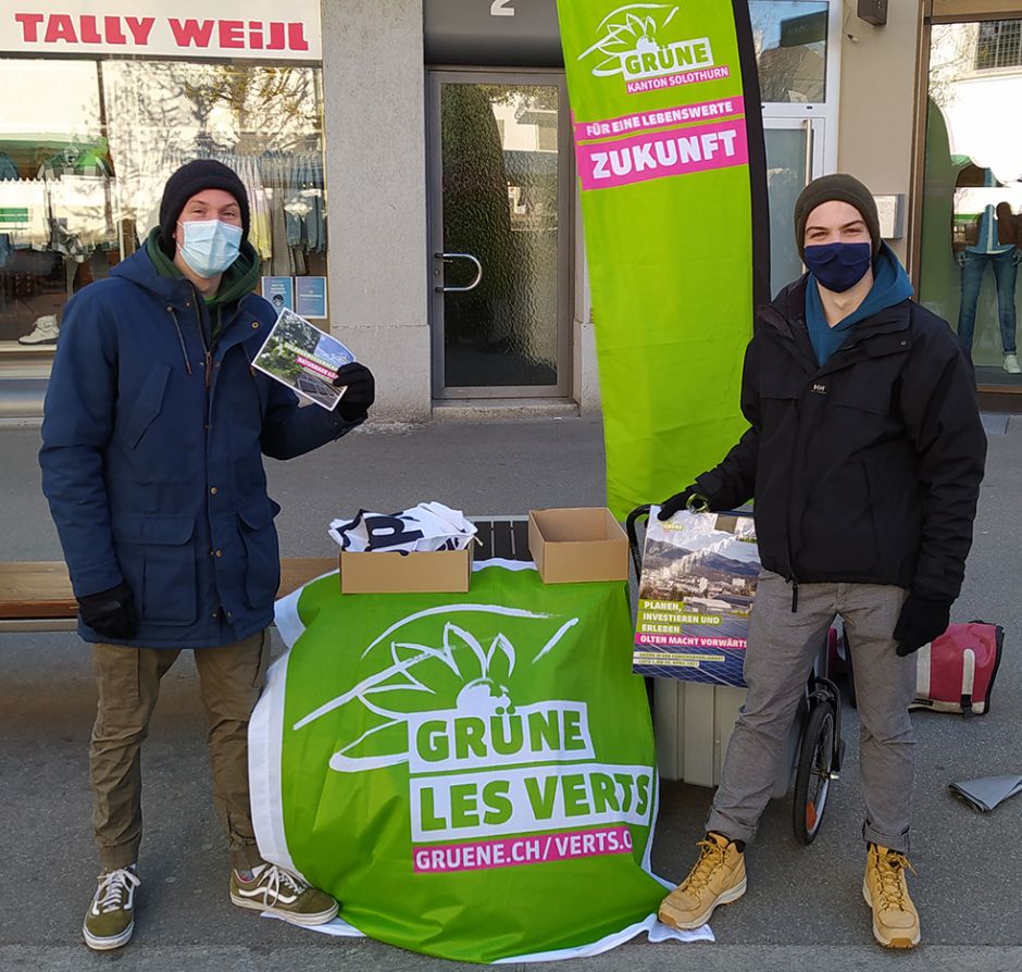 Die Besucherinnen und Besucher des Gemüsemarkts auf der Kirchgase mussten wahrscheinlich die wärmende Mittagssonne abwarten, bis sie das Samenpapier, das die grünen und jungen grünen Gemeinderatskandidaten Pascal Erni, Jann Frey-Rauber und Alan Schär verteilten, in die Erde legen konnten. Der Freude daran tat dies aber keinen Abbruch – der Werbeflyer, aus dem nach einem paar Tage begiessen verschiedene schöne Blumen spriessen werden, stiess auf ein überaus positives Echo. Aus der Unterhaltung über dieses originelle Kampagnenmaterial entstanden spannende Gespräche über die Naturstadt Olten und über die vielen Möglichkeiten, die Qualität des städtischen Grüns zu verbessern. Die drei Kandidaten freuen sich darauf, sich auch weiterhin dafür einzusetzen, dass die Stadt ihr Potential als Naherholungsgebiet und als durchgrünter Wohn- und Lebensraum ausschöpfen und entfalten kann.